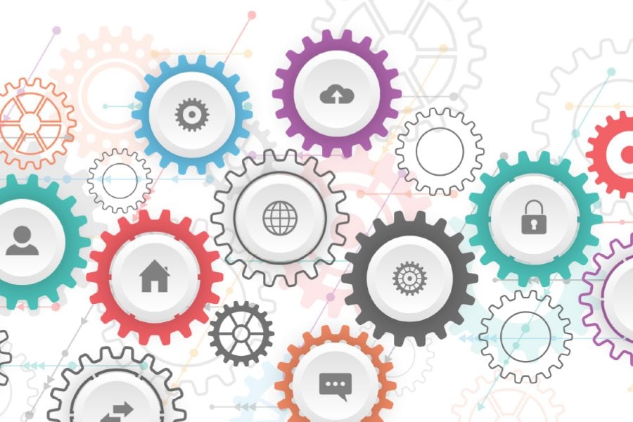gears with web icons